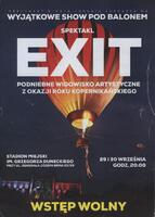 Zaproszenie na wyjątkowe show pod balonem spektakl “Exit”, podniebne widowisko artystyczne z okazji Roku Kopernikańskiego 2023. Spektakl “Exit” odbył się na Stadionie Miejskim im. Grzegorza Duneckiego przy ul. Generała Józefa Bema 29 i 30 września 2023 r.