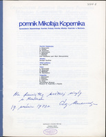 Copernicus Foundation Monument Committee, Chicago styczeń 1973 r. Ulotka wydana w związku z budową pomnika Mikołaja Kopernika w Chcago