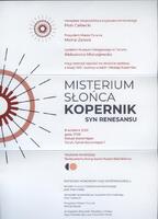 Zaproszenie na otwarcie wystawy “Misterium Słońca. Kopernik, syn renesansu”, 8 września 2023 r., Ratusz Staromiejski w Toruniu. Wystawa z okazji 550. rocznicy urodzin Mikołaja Kopernika. -
