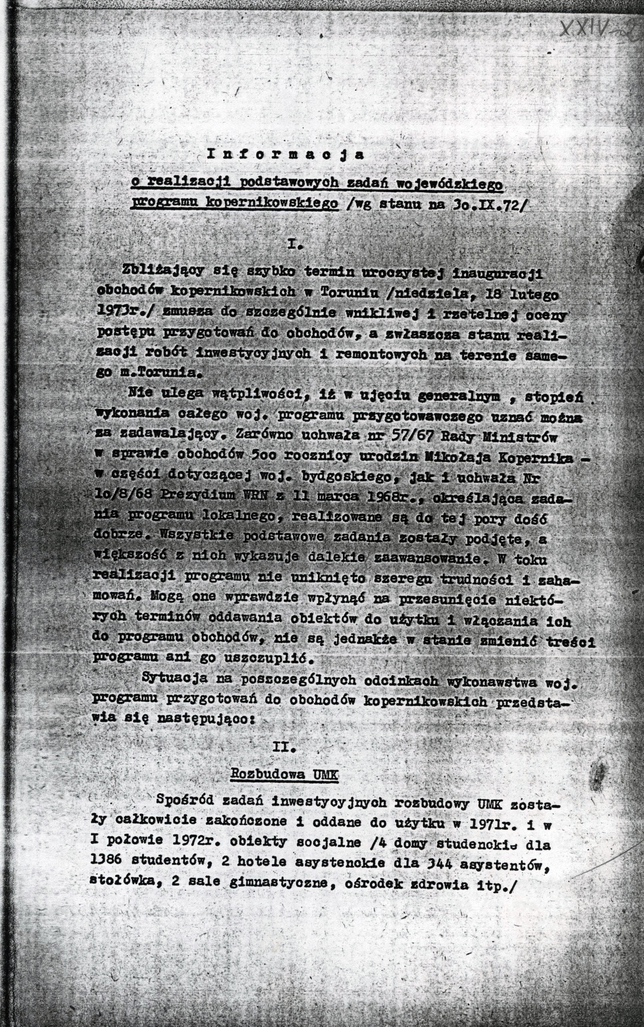 Informacja o realizacji podstawowych zadań wojewódzkiego programu kopernikowskiego (wg stanu na 30.IX.72)