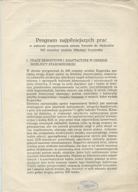- Program najpilniejszych prac w zakresie przygotowania miasta Torunia do obchodów 500. rocznicy urodzin Mikołaja Kopernika