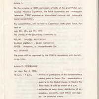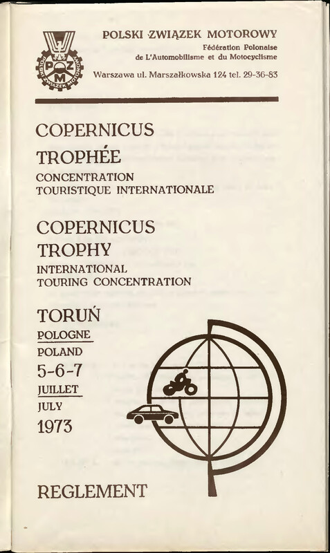 - Copernicus Trophee : Concentration Turistique Internationale : Toruń/Poland 5-6-7 Juillet 1973