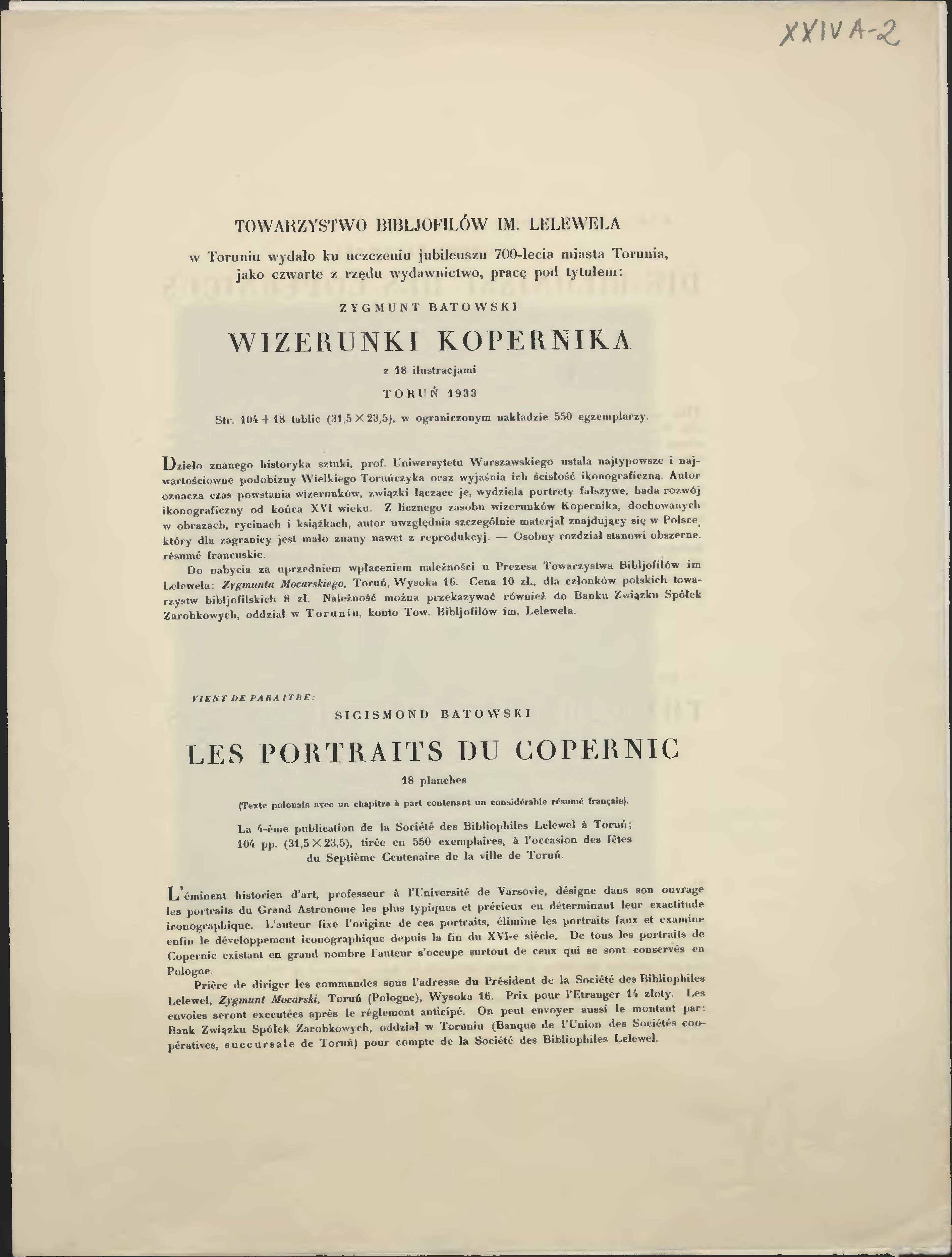 Wydawnictwo okolicznościowe wydane przez Towarzystwo Bibliofilów im. Lelewela w Toruniu z okazji jubileuszu 700-lecia miasta Torunia