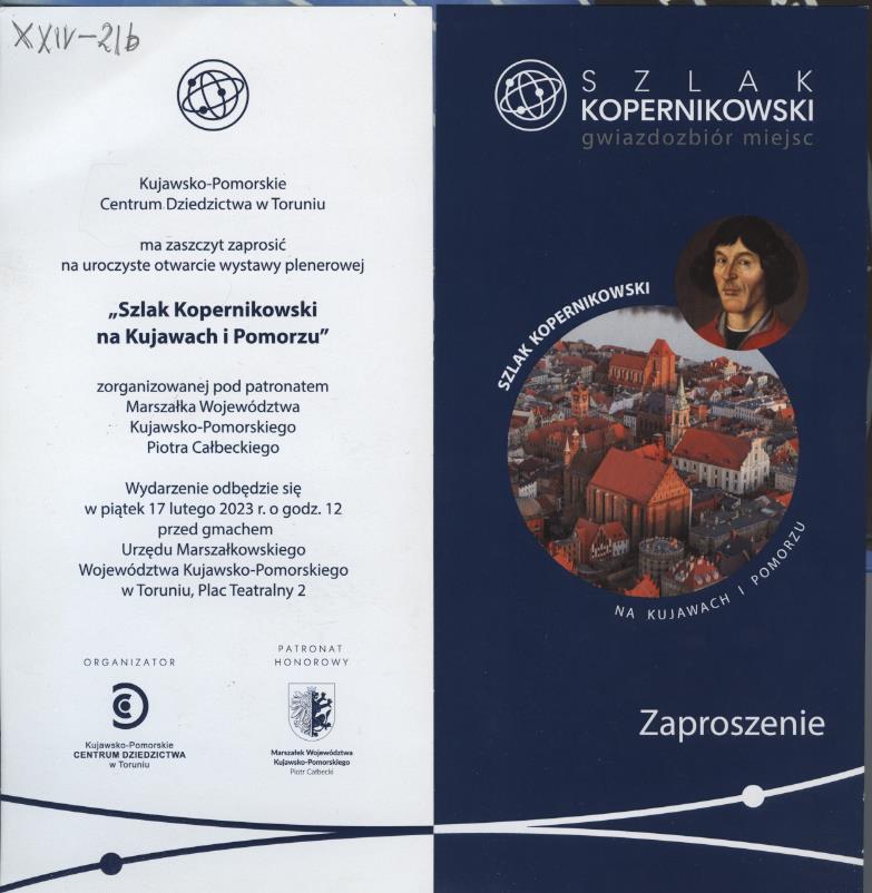 - Zaproszenie na otwarcie wystawy plenerowej “Szlak Kopernikowski na Kujawach i Pomorzu”, Toruń 17 lutego 2023 r.