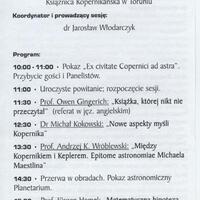 Sesja zorganizowana w związku z zakończeniem przygotowań do wydania wyjątkowego reprintu “De revolutionibus orbium coelestium”. Podczas trwania sesji miała miejsce premiera polskiego wydania ksiązki autorstwa prof. Ovena Gingericha, zatytułowanej “Książka, której nikt nie czytał”