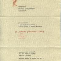 Zaproszenie do zwiedzania wystawy pt. “Grafika północnej Europy w dobie budzącego się renesansu”, od 5 sierpnia 1973 r. w Muzeum Okręgowym w Toruniu.