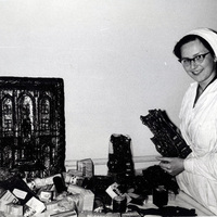 - Fotografia przedstawia pracownicę Fabryki Pierników Kopernik prezentującą wypieki