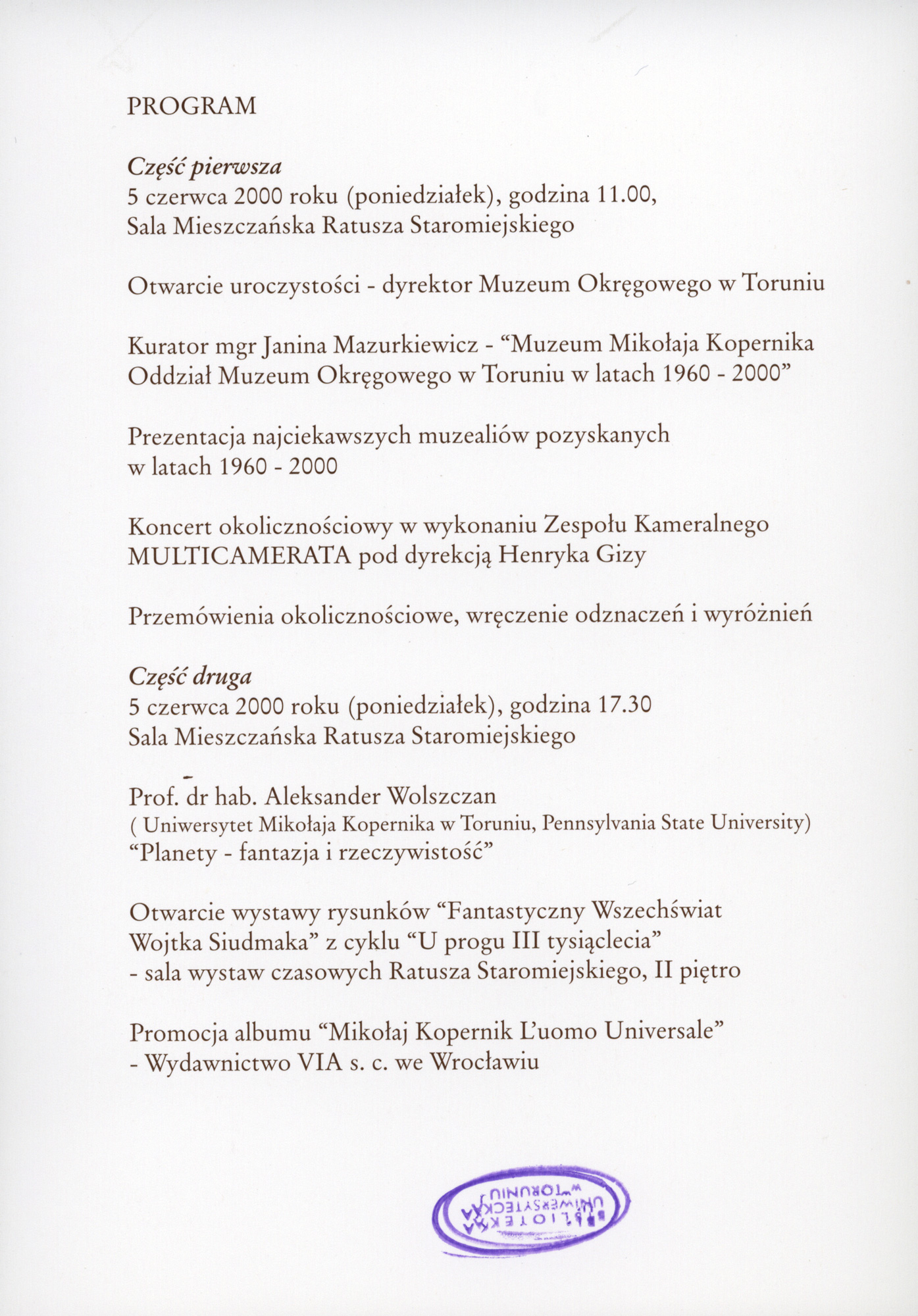 40-lecie Muzeum Mikołaja Kopernika Oddziału Muzeum Okręgowego w Toruniu 1960-2000