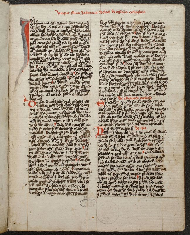 1. k. 1r- 43v: Ioannes Beleth, Summa de ecclesiasticis officiis