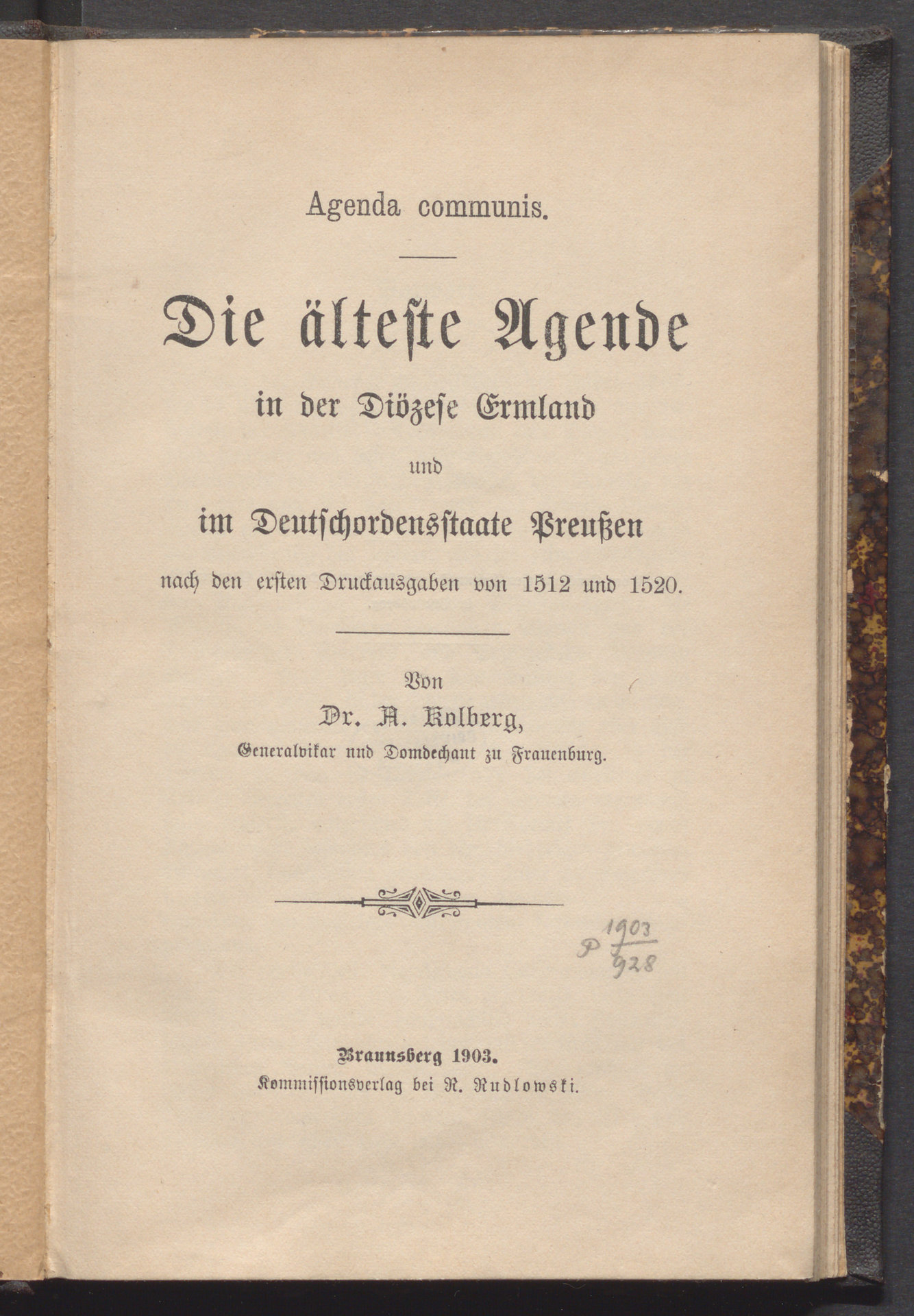 Die älteste Agende in der Diözese Ermland und Deutschordensstaate Preussen : nach den ersten Druckausgaben von 1512 und 1520