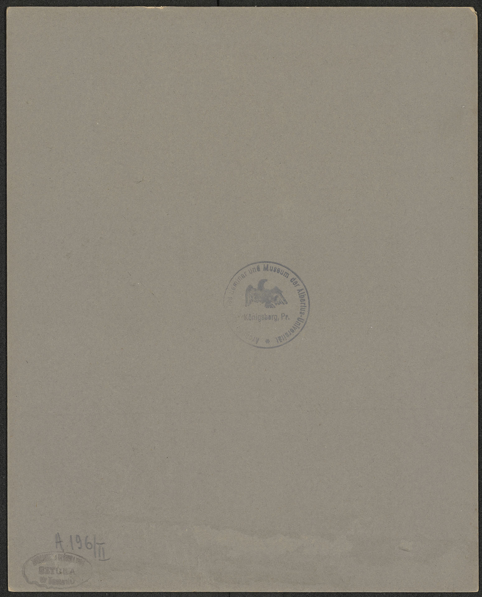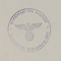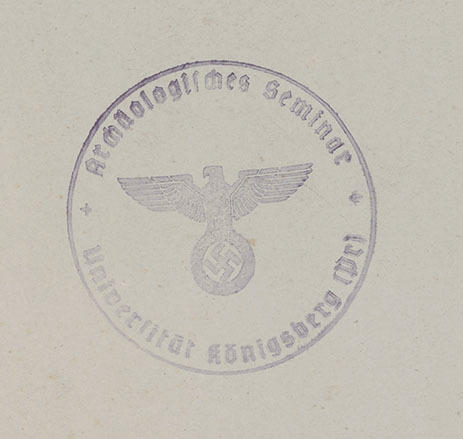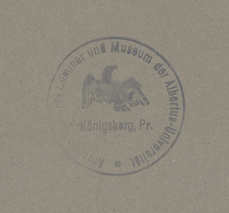 - Okrągła pieczęć na awersie tablic: Archeologisches Semminar und Museum der Albertus-Universität