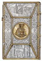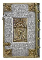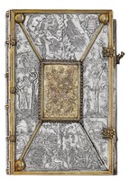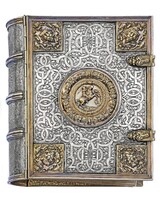 Srebrna oprawa z kolekcji Albrechta Hohenzollerna i jego żony Anny Marii - Ob.6.III.714-715 Pośrodku górnej okładziny okrągła plakieta ze sceną Grzechu Pierworodnego, obok sceny Stworzenia Ewy i Wygnania z raju. W centrum dolnej okładziny plakieta ze sceną Ukrzyżowania. W obrębie plakiety po lewej stronie sylweta kościoła, poniżej galopujący jeździec.