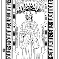 Wyklejka górnej okładziny – rysunek Chrystus ukrzyżowany, nota: "Hoc volumen reliquit frater Johannes Albrechtow ecclesie sue Sambiensi" (brat Jan Albrechtau legował tę księgę bibliotece katedralnej w Królewcu) i sygnatura Państwowej i Uniwersyteckiej Biblioteki w Królewcu