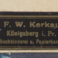 13. Pieczęć owalna introligatora Carla Roggenbroda: „Carl Roggenbrod Buchbinder Königsberg i. Pr.”;