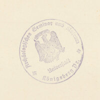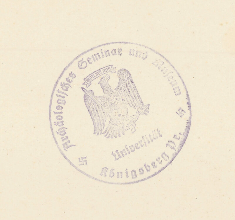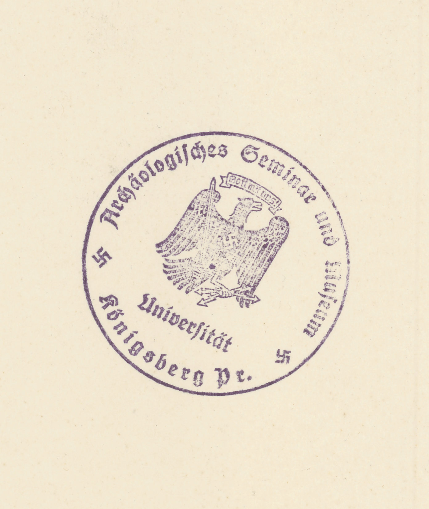 - Okrągła pieczęć na awersie tablic: Archäologisches Semminar und Museum Universität Königsberg Pr.