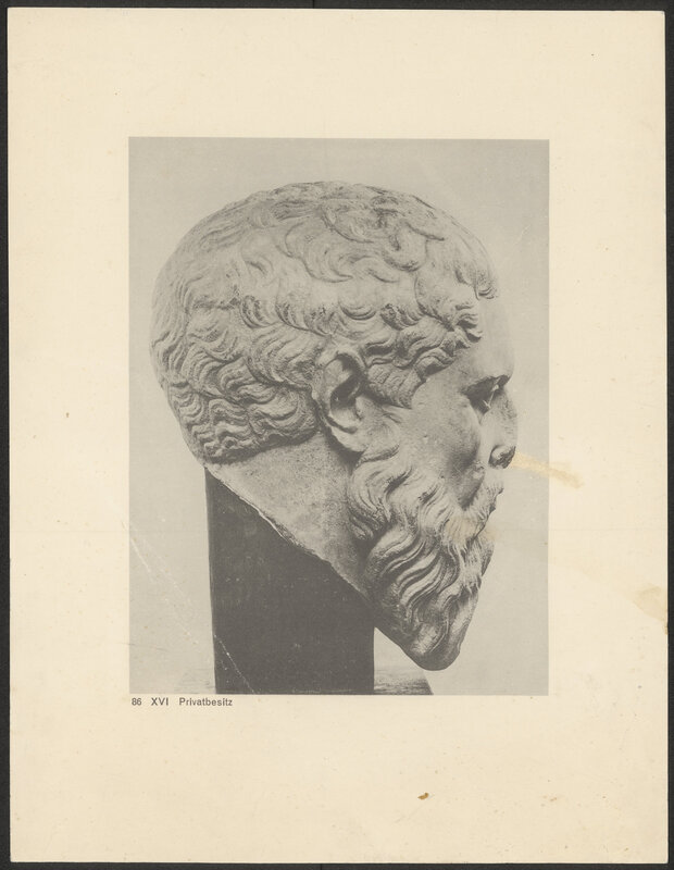 [Portret męski- rzeźba] - okrągła pieczęć na awersie tablic: Archäologisches Semminar und Museum Universität Königsberg Pr.