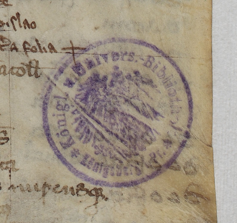 Po wojnie trzynastoletniej trafił do librarii krzyżackiej w Tapiawie. Stąd w 1542 r. został przewieziony do tworzącej się biblioteki zamkowej księcia Albrechta Hohenzollerna w Królewcu.