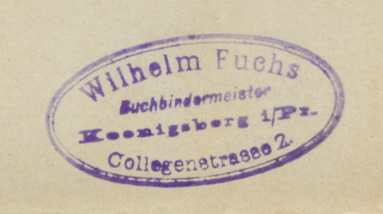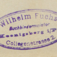 Pieczątka owalna introligatora: WIlhelm Fuchs Buchbindermeister.