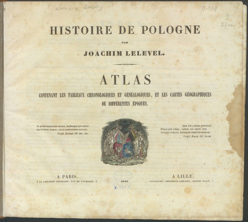 Histoire de Pologne par Joachim Lelevel: atlas contenant les tableaux chronologiques et généalogiques, et les cartes géographiques de différentes époques