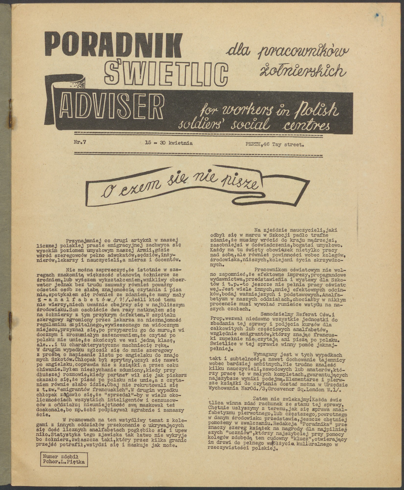 Poradnik dla Pracowników Świetlic Żołnierskich : wydawnictwo Polskiej YMCA w W. Brytanii 1941, nr 7