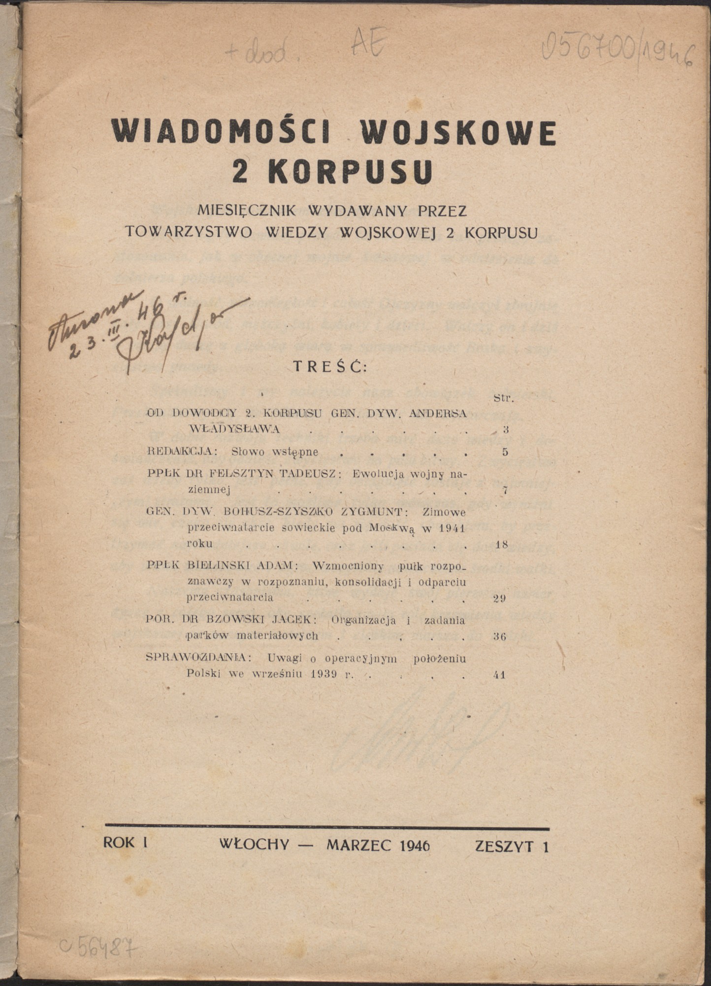 - Wiadomości Wojskowe 2 Korpusu 1946, R. 1 z. 1