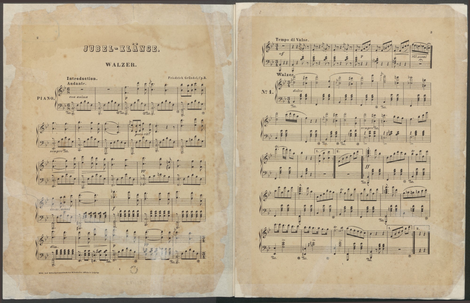 Jubel-Klaenge : Walzer zur Feier des dreihundertjaehrigen Jubilaeums des Thorner Gymnasiums : Op. 3