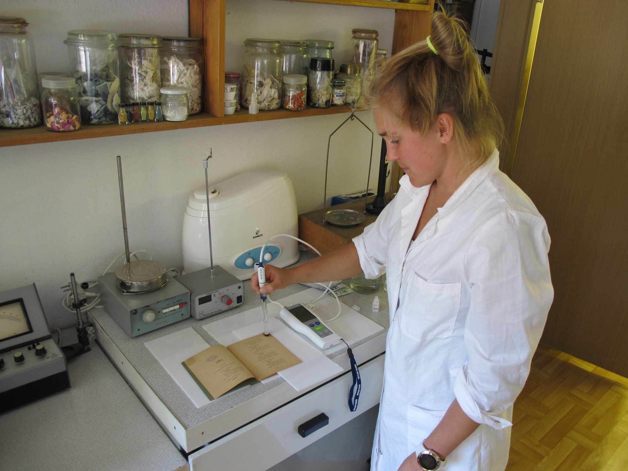 - Badanie pH zakwaszonych papierów w przygotowywanych do digitalizacji drukach.