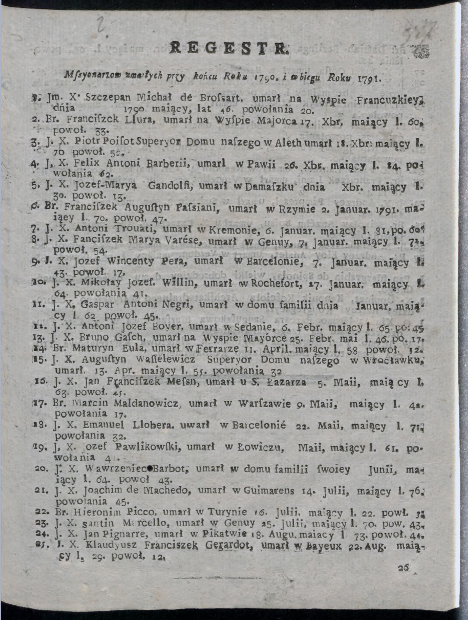 - Regestr : Mssyonarzow zmarłych przy końcu Roku 1790. i w biegu Roku 1791