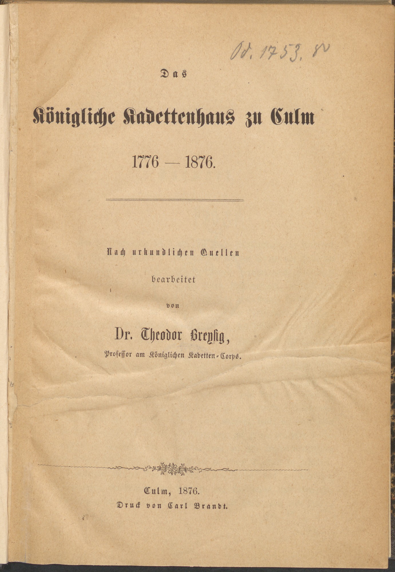 - Das Königliche Kadettenhaus zu Culm : 1776-1876