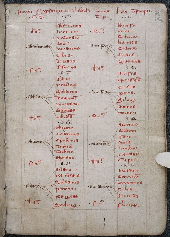 Rps 15/II, k. 86r: Indeks rzeczowy do tekstu