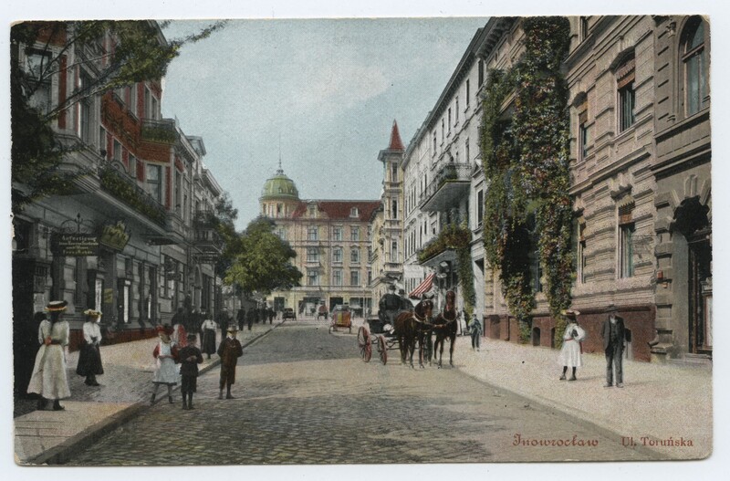 Oprócz zabytków pocztówki ukazywały również postaci z tego czasu, a także ciekawe, zmieniające się wraz z epoką witryny sklepowe. Życie zatrzymane w kadrze, a uchwycone na ulicy Toruńskiej w Inowrocławiu, możemy zaobserwować między innymi na kolorowanej karcie pocztowej wydanej po 1910 r., gdzie obok bryczki z zaprzęgiem konnym widać ludzi w strojach z epoki. Ukazywano na kartach pocztowych również ciekawe sceny rodzajowe, czego przykładem jest malownicza pocztówka z lekko karykaturalnym ujęciem Rynku Rybnego w Gdańsku na pierwszym planie. Przedstawia ona przekupki i handlarki rybami na nadbrzeżu oraz miniaturowe ujęcie fragmentu panoramy miasta nad kanałem.